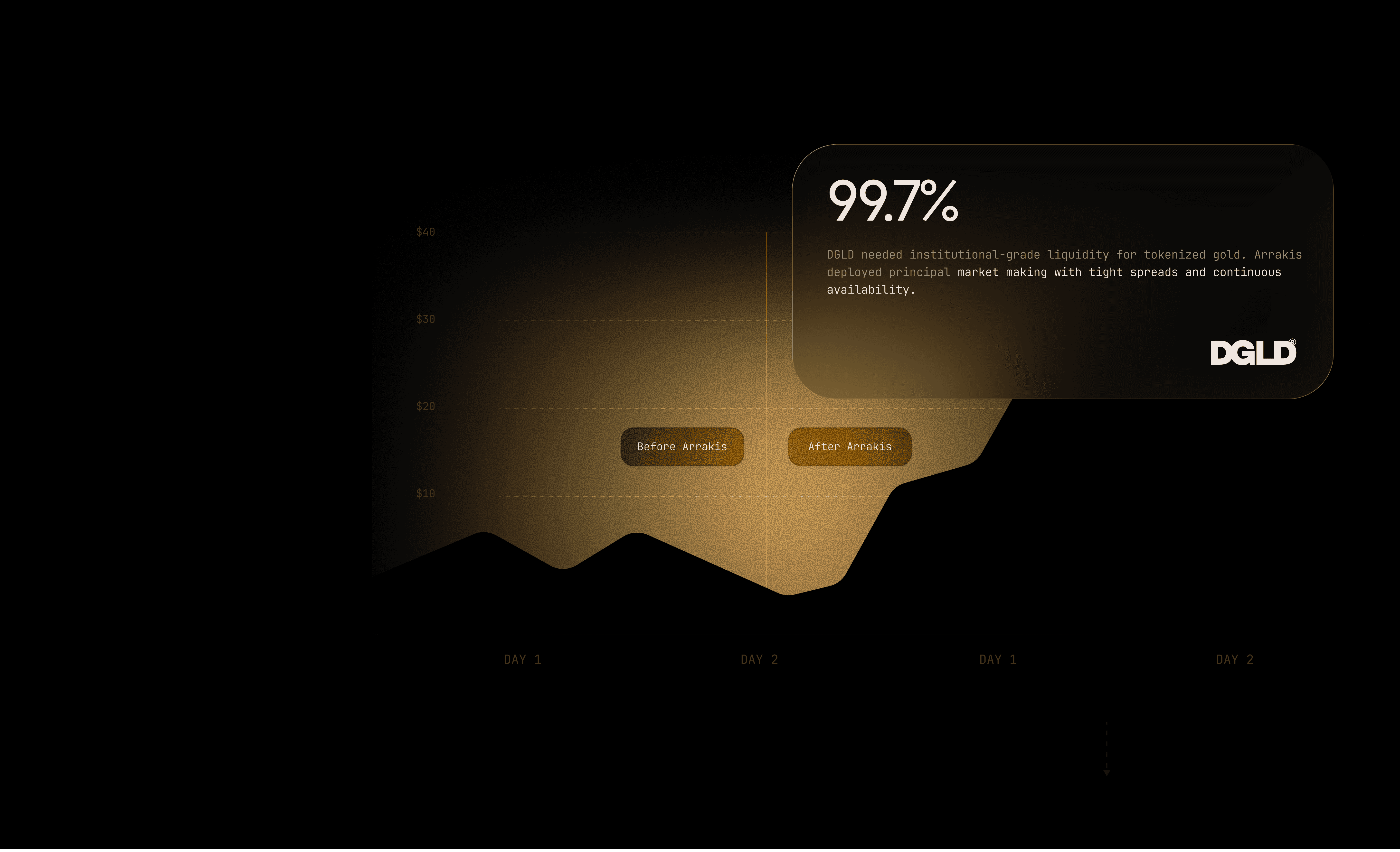 From DeFi tokens to tokenized equities — every asset class needs reliable liquidity. Arrakis provides market making across crypto-native tokens, tokenized stocks, perpetuals, and commodities — through delegated or principal strategies tailored to each market.